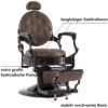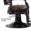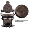Rückenlehne und Fußstütze sind synchron verstellbar: Kippbare Rückenlehne neigt sich vollständig bis zu 135°. Die Fußstütze kann je nach Bedarf hochklappbar werden. Dank des eingebauten Pedals ist dieser Friseurstuhl einfach auf die gewünschte Höhe verstellbar.