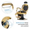 Rückenlehne und Fußstütze sind synchron verstellbar: Kippbare Rückenlehne neigt sich vollständig bis zu 135°. Die Fußstütze kann je nach Bedarf hochklappbar werden. Dank des eingebauten Pedals ist dieser Friseurstuhl einfach auf die gewünschte Höhe verstellbar.