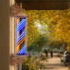 Dieses klassische Barber Pole mit blau-gold-weißen LED-Lichtern bringt eine nostalgische Atmosphäre in deinen Friseursalon oder Barbershop. Die sanfte Drehbewegung und energieeffiziente LEDs sorgen für einen auffälligen Look und eine lange Lebensdauer. Mit zwei separaten Schaltern kannst du Licht und Drehmechanismus unabhängig steuern. Das robuste, wasserdichte Gehäuse aus ABS-Material ist ideal für jede Umgebung.