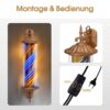 Leichte Anwendung: 2 separate Schalter; Der Drehmechanismus und das Licht können unabhängig voneinander gesteuert werden; sodass der Benutzer je nach Bedarf nur das Licht oder die Drehfunktion aktivieren kann; das 150 cm lange Netzkabel (EU Stecker) ermöglicht eine flexible Platzierung des Barbierstabs