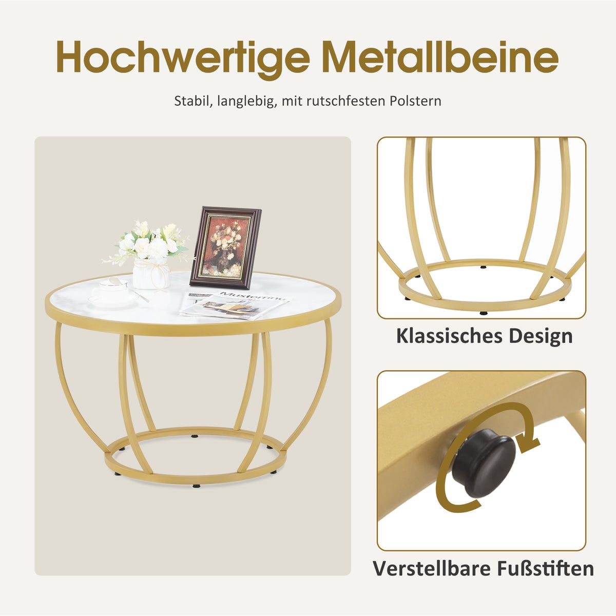 Dieser Couchtisch ist Ihre ideale Wahl. Kunstmarmor & goldene Rahmenstruktur: zeitlose Eleganz und luxuriöses Flair. Warum bringen Sie ihn nicht mit nach Hause – der Wohnzimmertisch macht sich mit Sicherheit hervorragend in Ihrem Wohnzimmer oder Laden