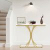 Modernes Design: Dieser Flurtisch hat eine Tischplatte aus Kunstmarmor, kombiniert mit einem goldenen Metallrahmen; das unregelmäßige, geometrische Design fügt sich mühelos in jeden Raum ein und verleiht Ihrem Zimmer einen Hauch von Stil und Eleganz