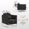 Langlebigkeit & Stabilität: Die Edelstahlbasis des shampoo-stuhls im modernen Design ist nicht nur pflegeleicht, sondern sorgt auch für hohe Tragfähigkeit (150KG) und Stabilität; das Waschbecken aus Keramik ist hochglänzend, korrosionsbeständig und leicht zu reinigen
