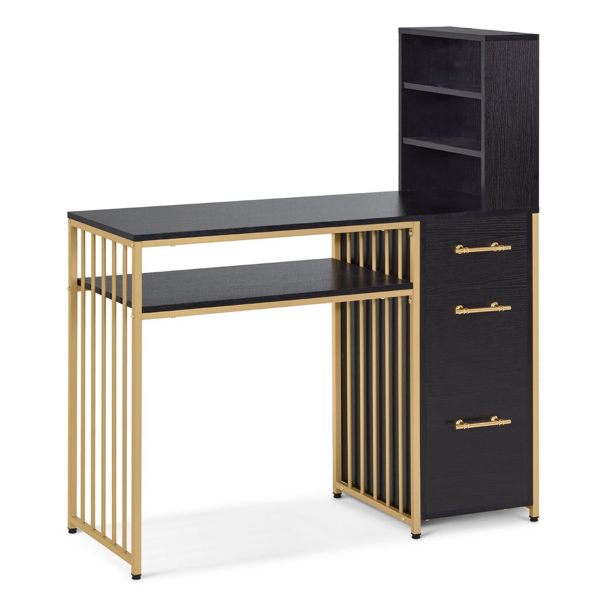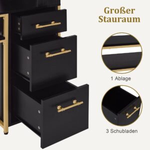 GROßER STAURAUM — Mit 3 Schubladen (33,5×23,5×9,5/18 cm), einer Ablage (43x70cm) und einem Regal (43x16x44cm) bietet der Nageltisch Ihnen einen geräumigen Arbeitsplatz und macht Ihre verschiedenen Maniküre Utensilien ordentlich und griffbereit.