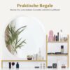 Offener Platz: 3 offenen Ablagen (13×60 cm) machen Ihre verschiedenen Kosmetika ordentlich; der Föhnhalter lässt den Haartrockner griffbereit platzieren; der große Spiegel (53,5×57 cm) kann ein weites Blickfeld bieten