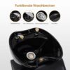 Langlebigkeit & Stabilität: Die Edelstahlbasis des shampoo-stuhls im modernen Design ist nicht nur pflegeleicht, sondern sorgt auch für hohe Tragfähigkeit (150KG) und Stabilität; das Waschbecken aus Keramik ist hochglänzend, korrosionsbeständig und leicht zu reinigen