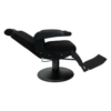 Sein Renaissance-inspiriertes Design, die vertikal gesteppte Polsterung und die komplett schwarze Optik mit matten Oberflächen setzen stilvolle Akzente. Die Polsterung aus feuerhemmendem, hochqualitativem Kunstleder sorgt zusätzlich für Sicherheit, Hygiene und Pflegeleichtigkeit – perfekt für den Salonbetrieb.