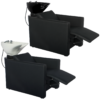 WK PEEK – Friseurwaschbecken Friseur Waschplatz Waschsessel Rückwärtswaschbecken ( Schwarz / Weiß ) mit Elektronische Fußstütze