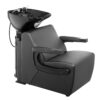 Der komfortable Waschsessel verfügt über eine gepolsterte Sitz- und Rückenfläche mit integrierten Federn, die ein besonders angenehmes Sitzgefühl ermöglicht. Die zusätzliche Lendenpolsterung unterstützt eine entspannte Körperhaltung – ideal für längere Pflege- oder Wellnessbehandlungen. Die tiefe Keramik-Waschschüssel in Schwarz oder Weiß ist über einen Kippmechanismus verstellbar und sorgt für eine optimale Kopfposition.