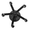 Hocker mit flachem, kreisförmigem Sitz und höhenverstellbar durch einen Gasfeder. Hochwertiger schwarzer PU-Bezug. Spritzgegossene Kunststoffbasis mit 5 zweikomponentigen Rädern.